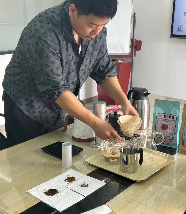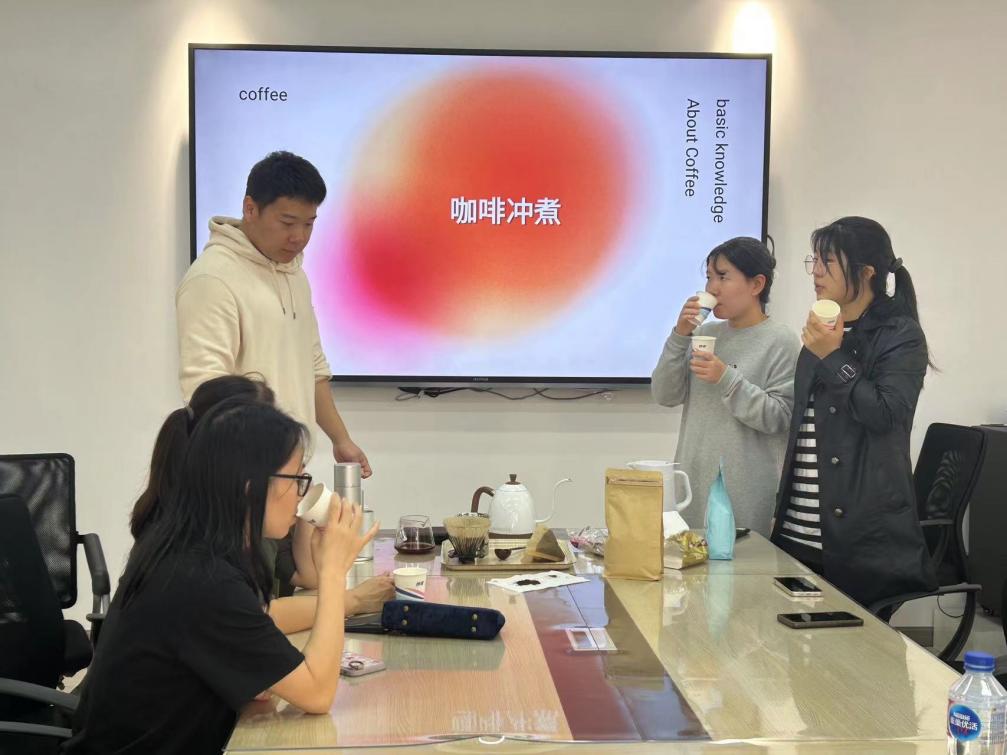 在講解員的講解與帶領下,各位教職工還著手進行手沖咖啡的制作體驗,通過研磨、注水、萃取等一系列流程進行了手沖制作并進行了品嘗,切身體會到不同萃取方式對于咖啡風味的影響,體驗到了咖啡文化的魅力與趣味。