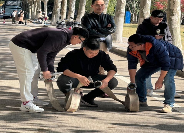本次比賽校內各二級工會積極參與,共有10支教職工隊伍參加,每隊4人,比賽內容為消防水帶展開、連接和出水;比賽項目貼合實戰,既考驗個人消防技能,也體現了團隊協作配合能力。