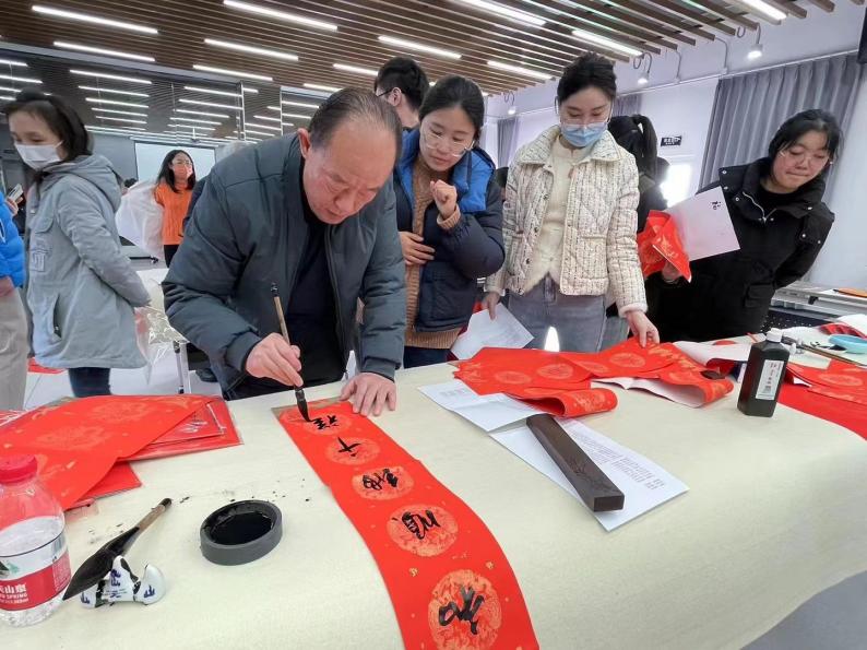 “和順”“平安”“富足”…老師們紛紛表達著自己對美好生活的愿景,期盼來年生活更如意,工作更順利!在書寫春聯(lián)的過程中,老師們集思廣益,共享書畫魅力,活動現(xiàn)場充滿了濃厚的傳統(tǒng)文化氣息。