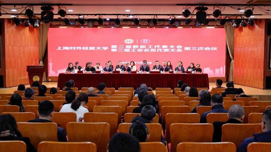 1月19日,上海對外經貿大學第二屆教職工代表大會暨工會會員代表大會第三次會議在松江校區舉行。校黨委書記祁明,校長汪榮明,校黨委副書記、工會主席吳毅,校黨委副書記、紀委書記章益國,副校長徐永林出席會議。學校教代會暨工代會101名正式代表出席會議。會議還邀請上海對外經貿大學附屬松江實驗學校黨總支書記張輝以及學校各單位、部門負責同志,各民主黨派基層組織負責人、二級工會主席、工會經審委委員等列席。大會由吳毅主持。