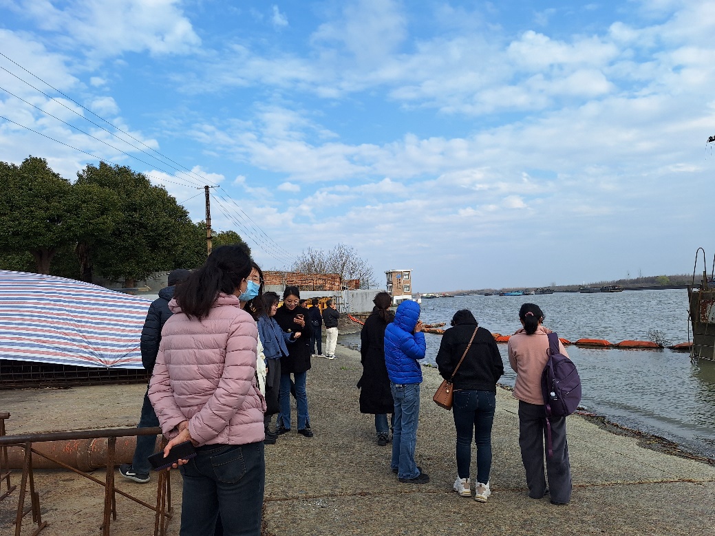 最后一個點位在米市渡渡口,渡口位于松江區南部車墩鎮大漲涇匯入黃浦江口東岸,浦南為泖港鎮塘口。在講解員的帶領下參觀了這個曾經繁榮一時的渡口, 進一步了解了松江區百年交通與生活方式變遷。