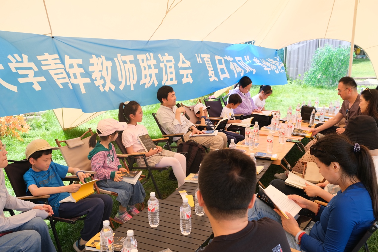 讀書會(huì)后,來自十多個(gè)學(xué)院(部門)的老師們一起開展形式多樣的戶外拓展活動(dòng),大家敞開心扉愜意交流,享受周日美好的音樂、陽光、書籍和美食,平日的疲憊一掃而空。同時(shí),池塘邊、草地上、帳篷里……活潑可愛的孩子們相聚在一起,時(shí)不時(shí)傳來悅耳的笑聲。日漸西下,大家依舊不舍離去。