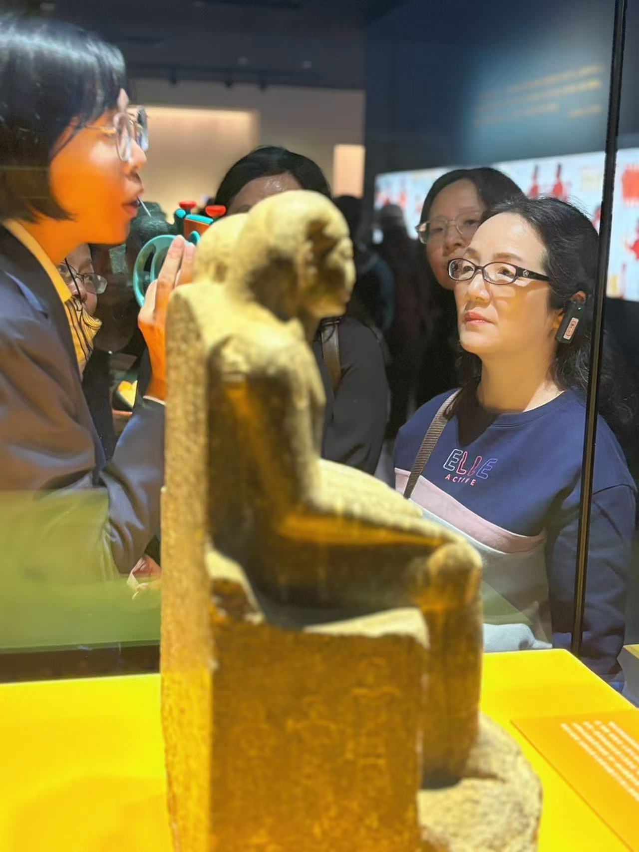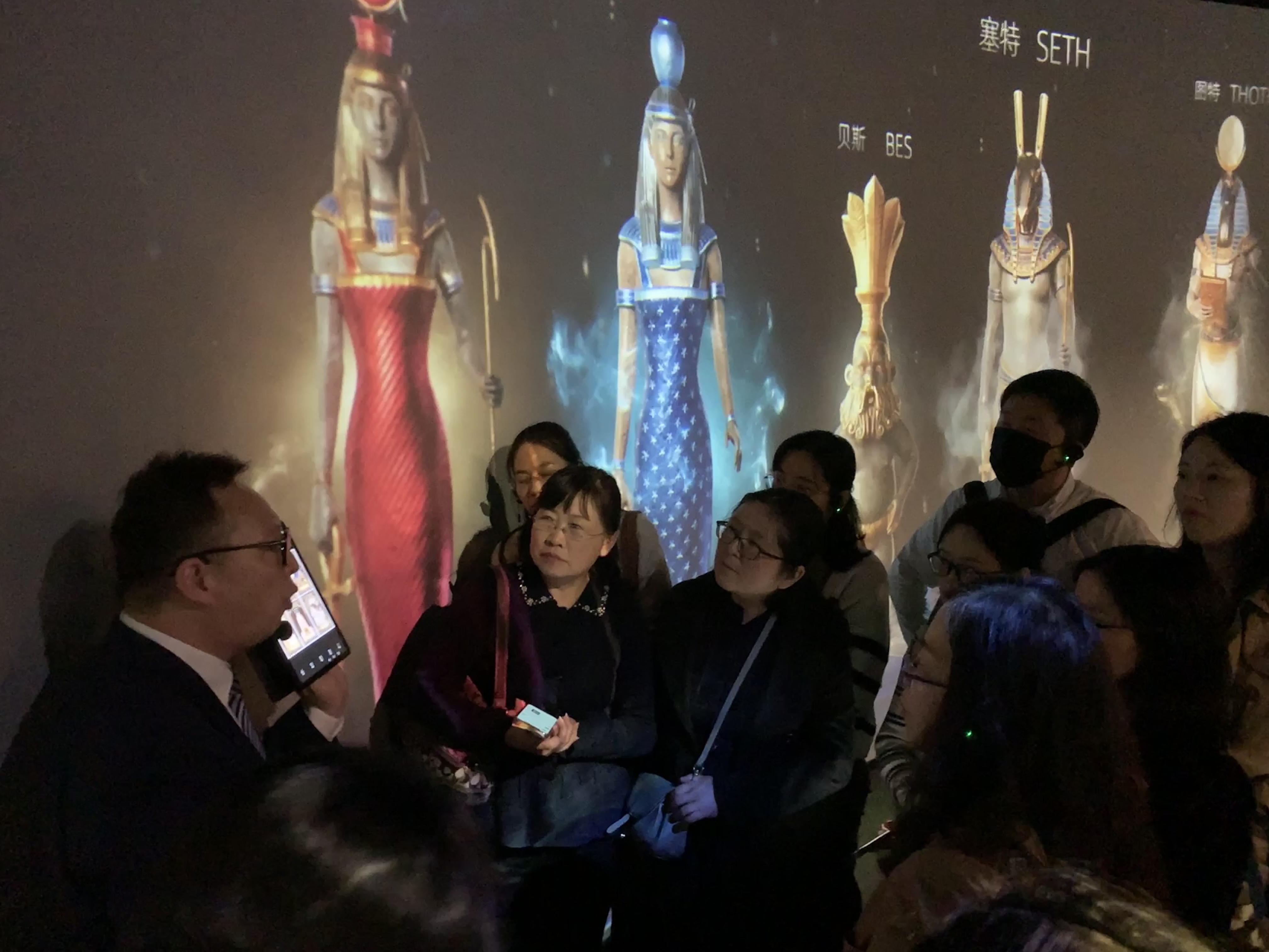 來到“圖坦卡蒙的時代”,圖坦卡蒙及其家族的歷史與文化呈現在眼前。在講解員引導下,老師們了解了“圖坦卡蒙的時代”的歷史背景和宗教改革,通過一系列相關文物,探索背后豐富的故事。圖坦卡蒙巨型雕像,圖坦卡蒙的父親埃赫那吞巨像,他的母親那芙蒂蒂雕像等,都讓歷史活了過來。