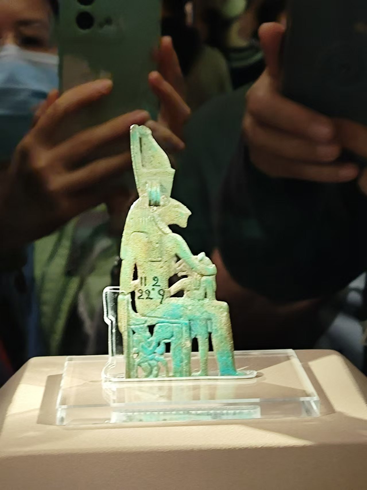 “法老的國度”展廳是此次展覽的核心展區之一,一個展區,呈現了一部濃縮的古埃及文明史。展廳采用沉浸式設計,逼真復刻了古埃及哈布神廟的廊柱場景,老師們在這獨特的設計中體驗了古埃及歷史發展脈絡。其中,還探討了古埃及文明和中華文明各自的發展脈絡。