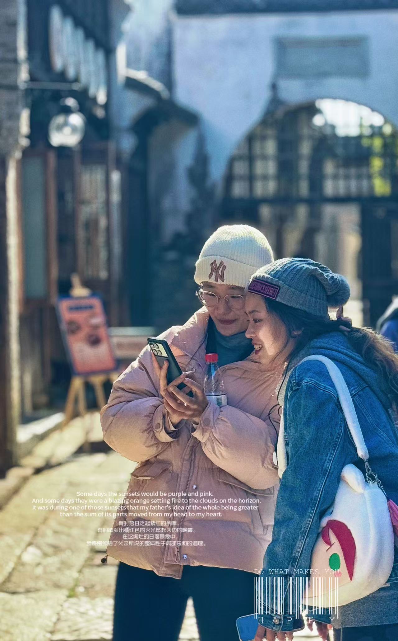 濮院鎮(zhèn)位于嘉興桐鄉(xiāng)市,有近千年的悠久歷史,曾因“日出萬匹綢”被譽(yù)為“嘉禾一巨鎮(zhèn)”。全新打造的濮院時尚小鎮(zhèn)融合江南水鄉(xiāng)風(fēng)情與都市時尚元素,以唐宋風(fēng)格建筑和密布水網(wǎng)為特色。教職工們在冬日暖陽的沐浴下,穿行于古街古巷之間,觸摸時空,漫步于青石碧水之畔,品味自然,不僅欣賞了別具特色的古建筑,也感受了濃厚的歷史文化。