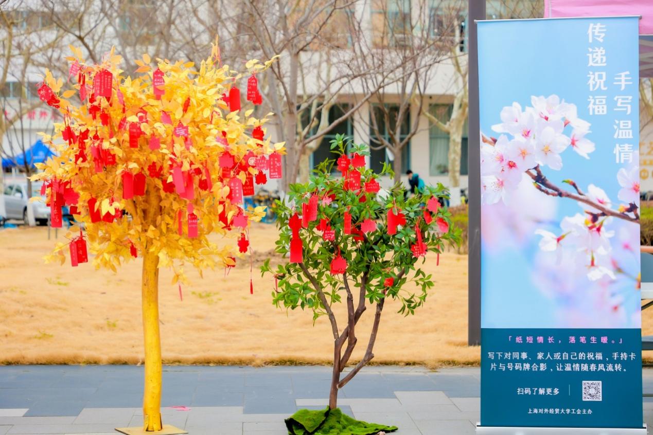 在“傳遞祝福”打卡點,教職工們紛紛寫下對節日的祝福。有對自身的期許,也有對他人的勉勵;有對校園的祝愿,也有對未來的暢想。一句句溫暖的話語,一張張真摯的祝福卡片,共同在祝福樹上留下了屬于這個春天的印記,成為活動的一大亮點。