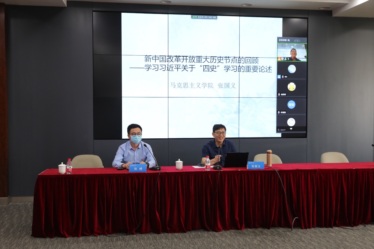 在專題黨課篇,校“四史”宣講團成員、馬克思主義學院副教授張國義作了題為《新中國改革開放歷史關節點的回顧及啟示——學習習近平關于“四史”學習的重要論述》的講座。