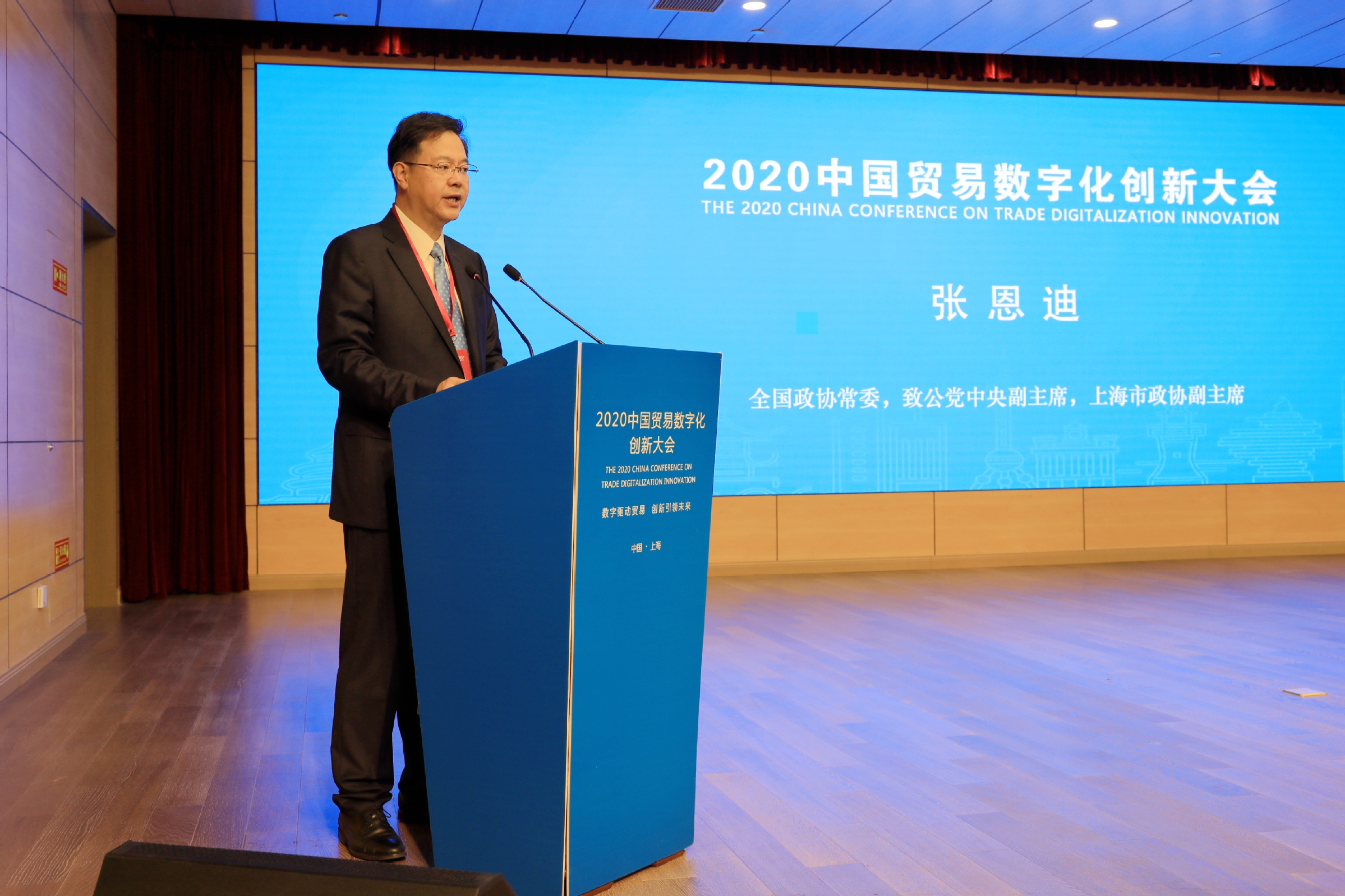 張恩迪在致辭中對大會的舉辦表示祝賀,對我校建校60年來為國家和上海對外開放事業做出的突出貢獻給予了充分肯定。他結合貿易數字化研究對國家經濟轉型發展的重要意義,對我校發展提出三點希望:一是發揮自身辦學優勢,主動適應,合作創新,打造立足上海、面向長三角、輻射全國的合作研究平臺。二是進一步加強校企合作,以研究院為平臺,通過深化合作及人才交流,進一步推進貿易數字化方面的人才培養和學科建設。三是總結凝練60年辦學經驗,發揚學校優良傳統,在“貿”字上做好文章,努力使學校辦學水平、辦學能力再上新臺階。