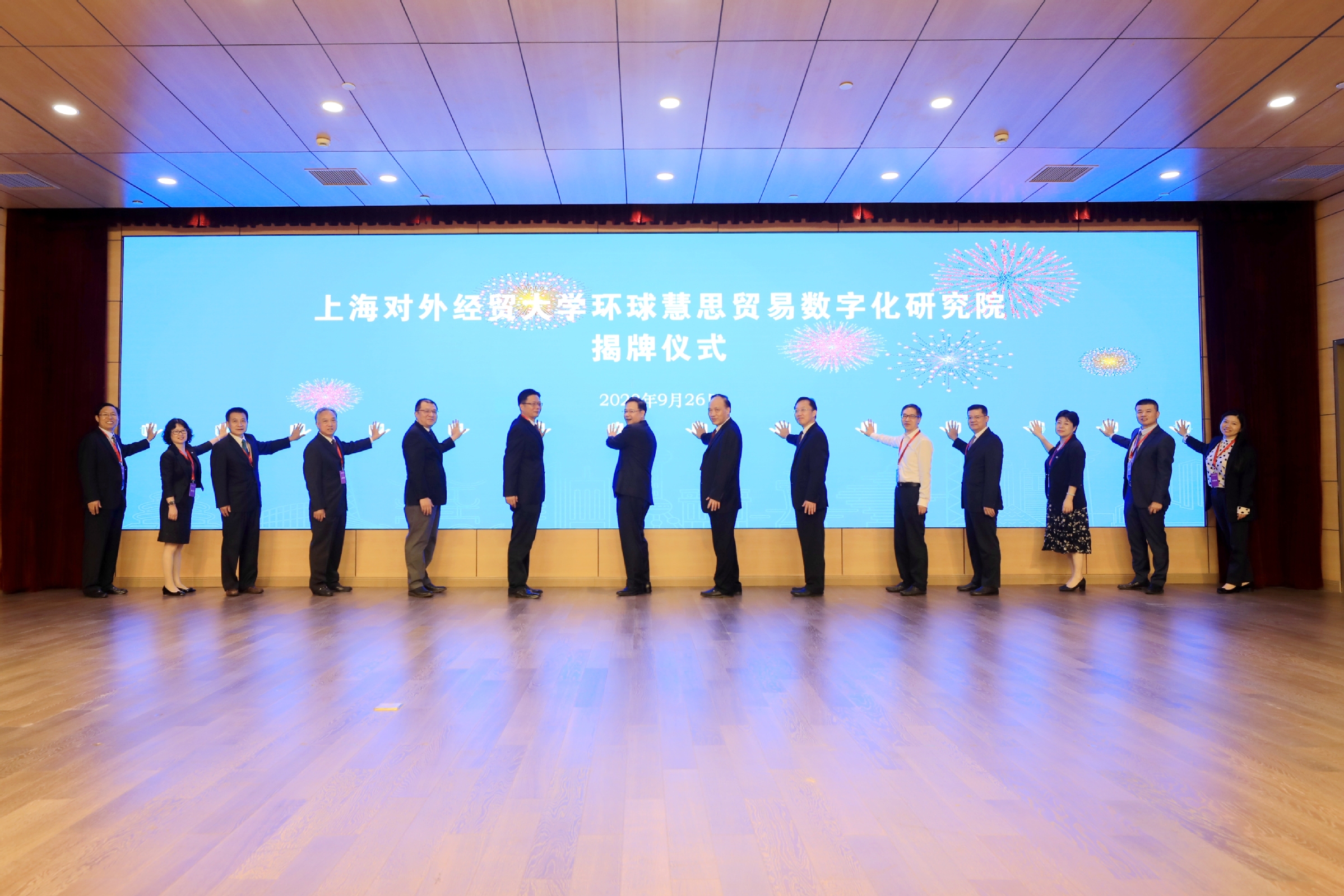 會議舉行了上海對外經貿大學環球慧思貿易數字化研究院成立儀式。環球慧思公司副總裁劉大偉和我??蒲刑幪庨L何歡浪分別代表環球慧思公司和上海對外經貿大學簽署合作框架協議。環球慧思董事長邵宏華和上海對外經貿大學統計與信息學院院長劉永輝受聘為研究院首任院長。與會領導共同按下啟動按鈕,標志貿易數字化研究院正式成立。
