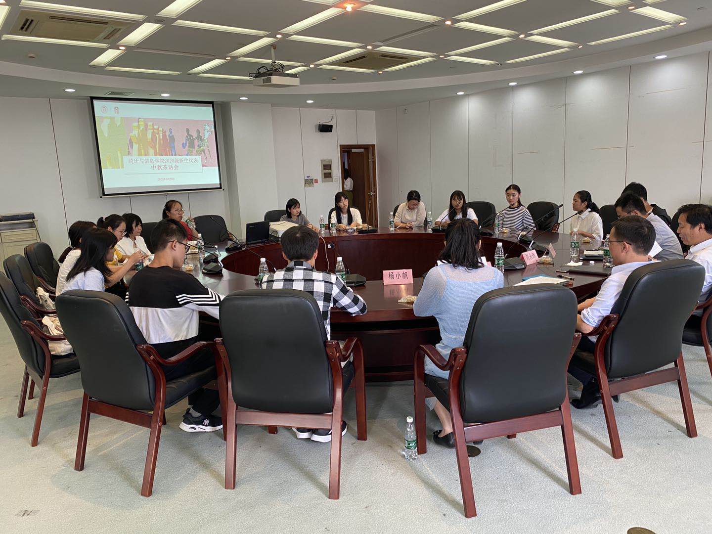 時維九月,序屬三秋。值此國慶與中秋雙節(jié)來臨之際,為表達對新生的關心關懷,統(tǒng)計與信息學院于2020年9月29日召開了2020級外省市新生代表中秋茶話會。學院院長劉永輝、黨委書記范登峰、副書記徐峰、輔導員楊小帆以及2020級新生代表參加了會議。會議由徐峰主持。