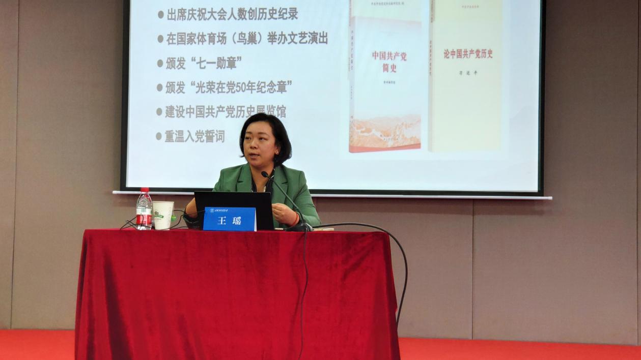 王瑤副教授從“一個奮斗主題”“四個偉大成就”“一個偉大精神”“九條基本經驗”等方面闡釋了習近平總書記“七一”重要講話的重要意義和深刻內涵。她結合上海紅色文化的誕生與發展史,從“初心始發地的真理追尋”“革命指揮地的使命擔當”“浴血奮戰地的忠誠為民”等三個方面深刻分析了偉大建黨精神產生的歷史文化淵源,回應了為什么共產黨在上海誕生,以及歷史為何選擇了上海這座城市這一關鍵問題。報告主題鮮明、史料翔實、深入淺出,對學院廣大師生黨員進一步深入學習貫徹習近平總書記“七一”重要講話精神,起到了重要的推動作用。
