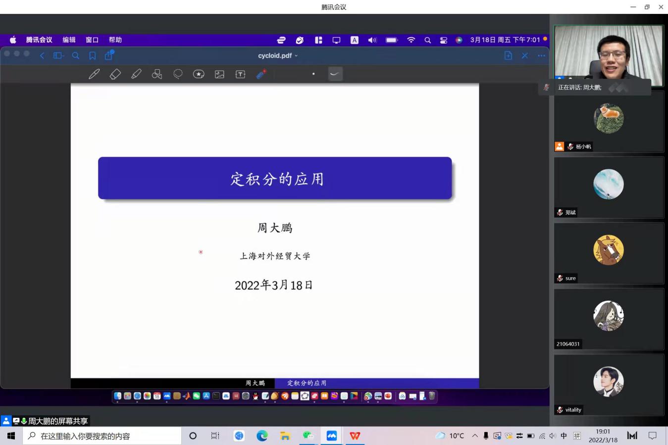 3月18日晚,第三場“云上課程幫”活動中,周大鵬老師就定積分的應用問題與同學們進行了分享交流,課堂氛圍非?;钴S。