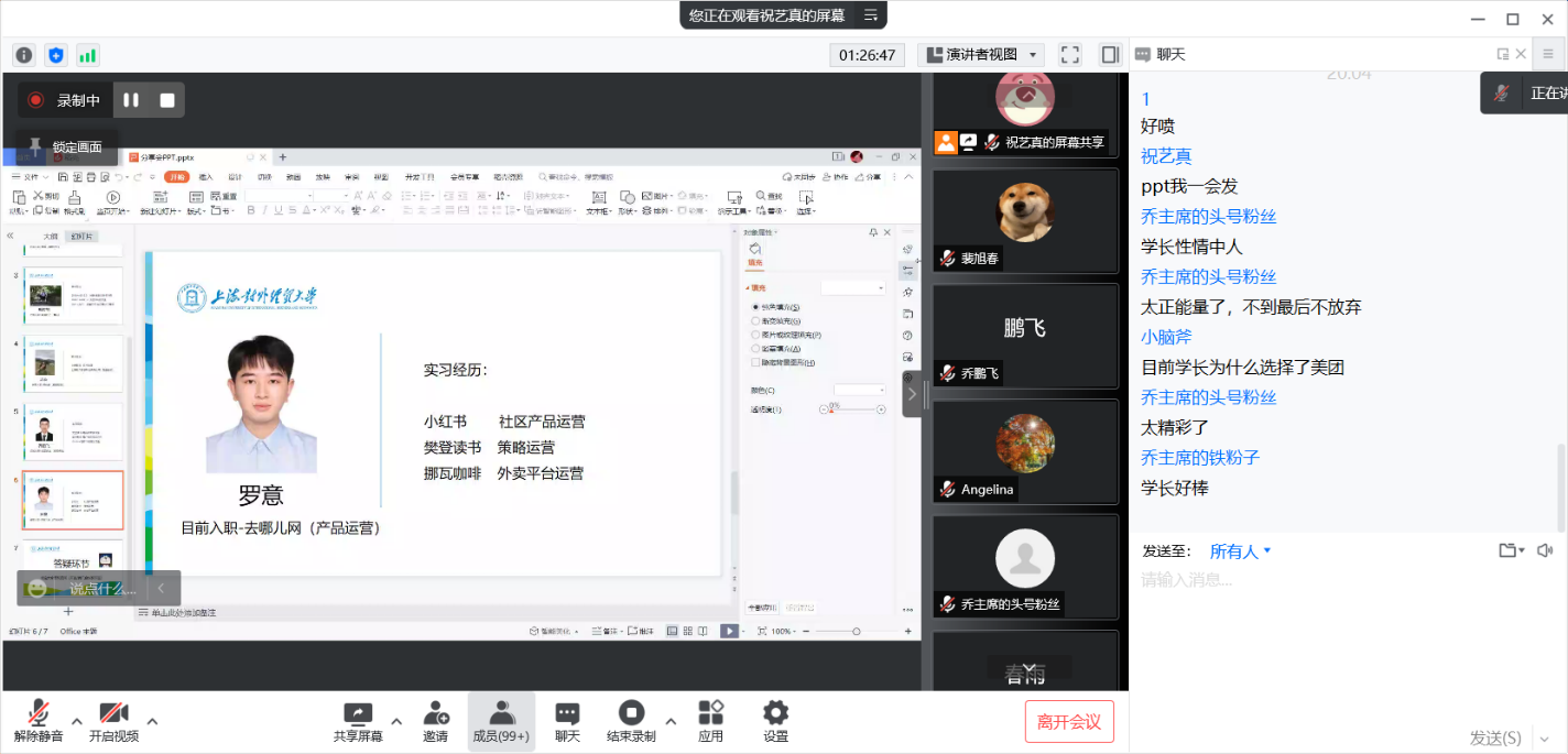 本次分享會有幸邀請到了19級應用統計和國際商務專業的學長學姐,為我們分享關于互聯網大廠求職的寶貴經驗,下面讓我們來回顧一下幾位學長學姐的分享過程吧~