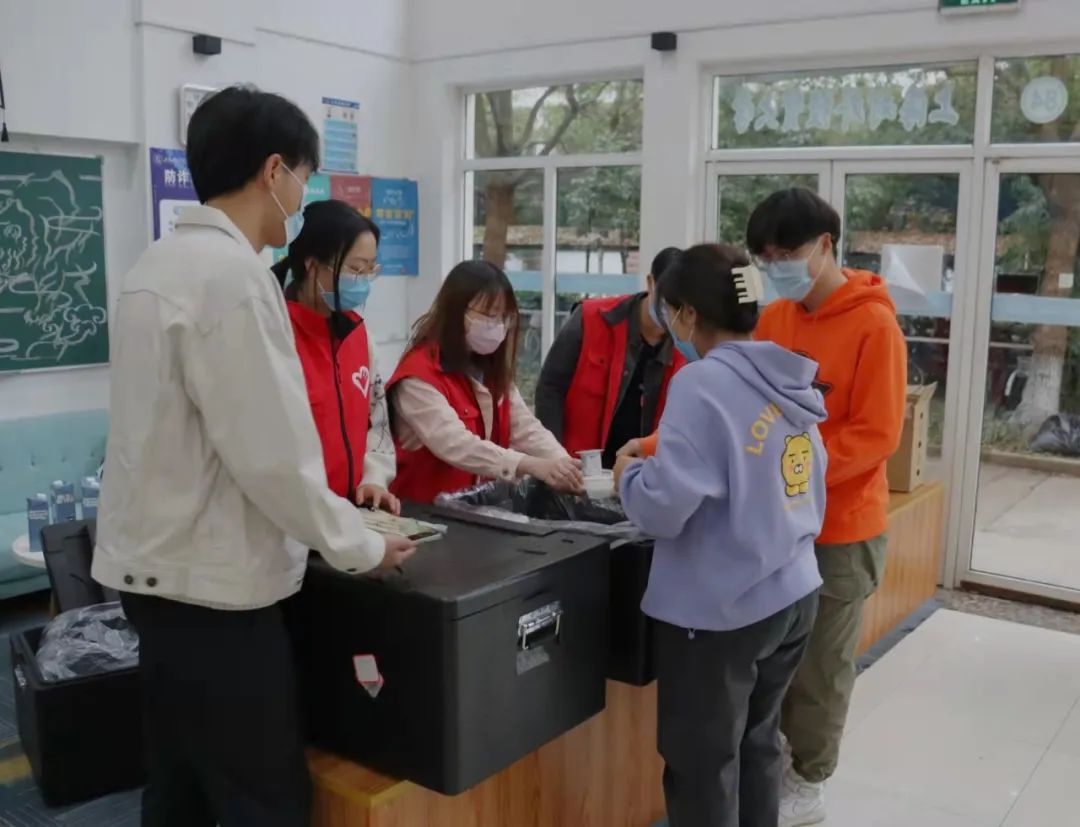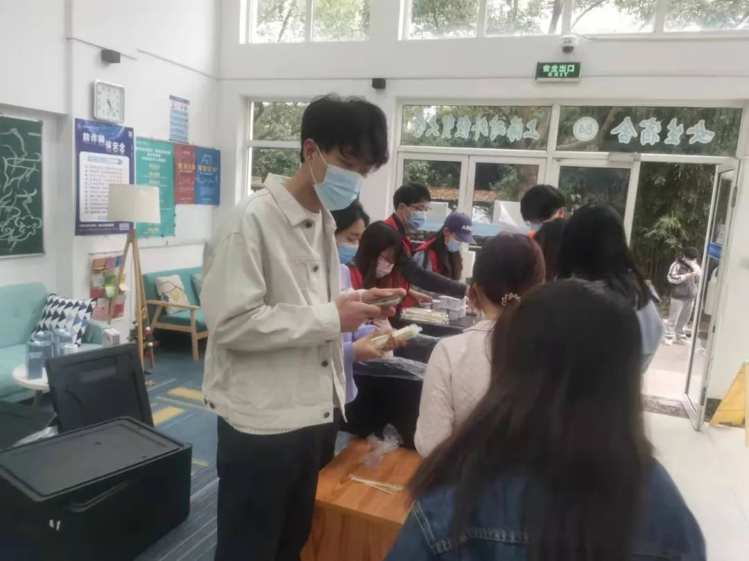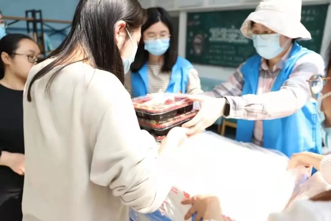 很榮幸此次能擔任一名抗疫志愿者,彌補兩年前的那抹遺憾。作為樓宇志愿者,我們引導大家進行核酸檢測,分發一日三餐。作為送餐志愿者,我們推著餐車在各個樓棟之間穿梭,確保同學們能準點吃飯。在這里,所有人都是溫暖的存在。老師們開緊急會議,更新信息,準備物資,陪同出餐;無數的志愿者們并肩作戰,保障大家的日常生活;同學們積極配合,井然有序,悄悄為志愿者們準備自己的一份心意。