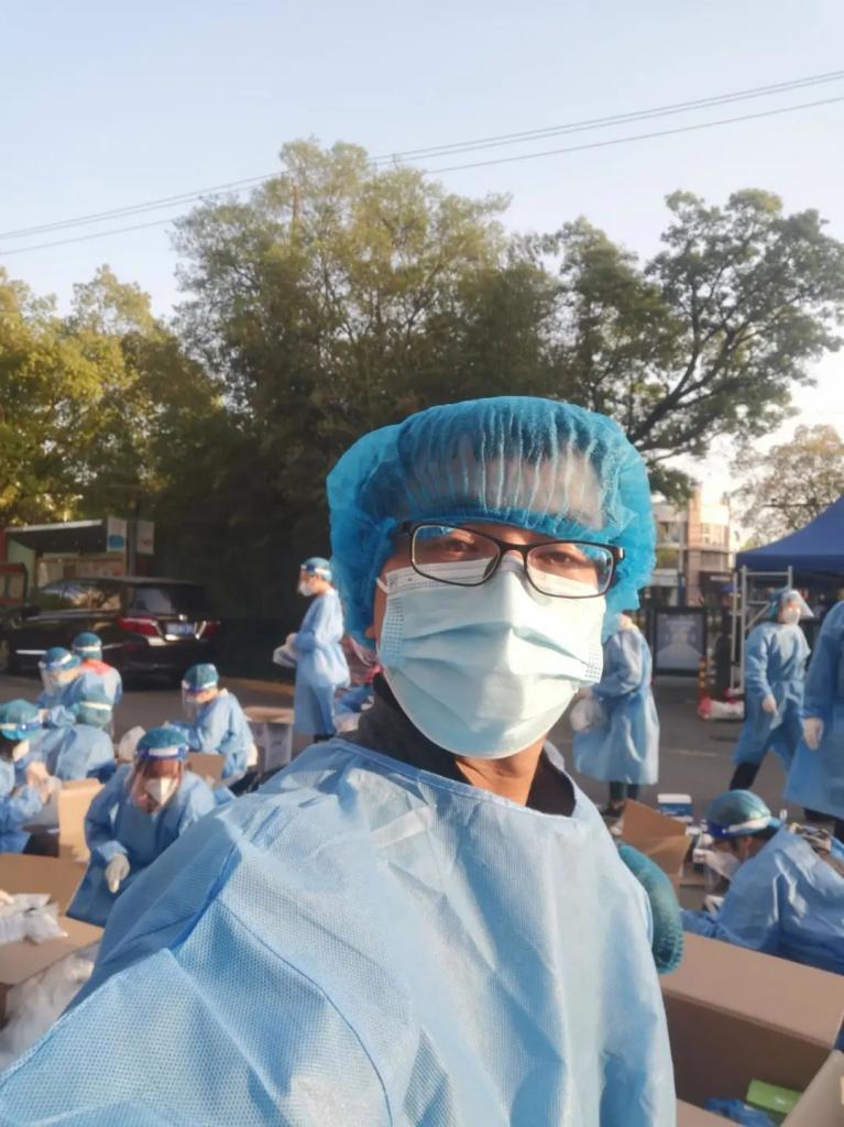 學院數理統計系教工黨支部宣傳委員鄭悅,積極投身到所在社區抗疫一線,通過志愿者服務為疫情防控貢獻自己的一份微薄之力。在志愿服務中,她天不亮就來到小區門口集合,積極配合社區領導和醫務工作者,參與核酸檢測內場秩序維護、發放核酸試劑管、爭分奪秒地參與到數據統計工作,查找是否有遺漏人員。通過志愿服務,她切實體會到疫情防控工作的重要性和艱巨性,認識到防控責任重于泰山,時間就是生命,及時管控,才能有效防止病毒的傳播。她堅信,眾志成城,同舟共濟,戰“疫”必勝!