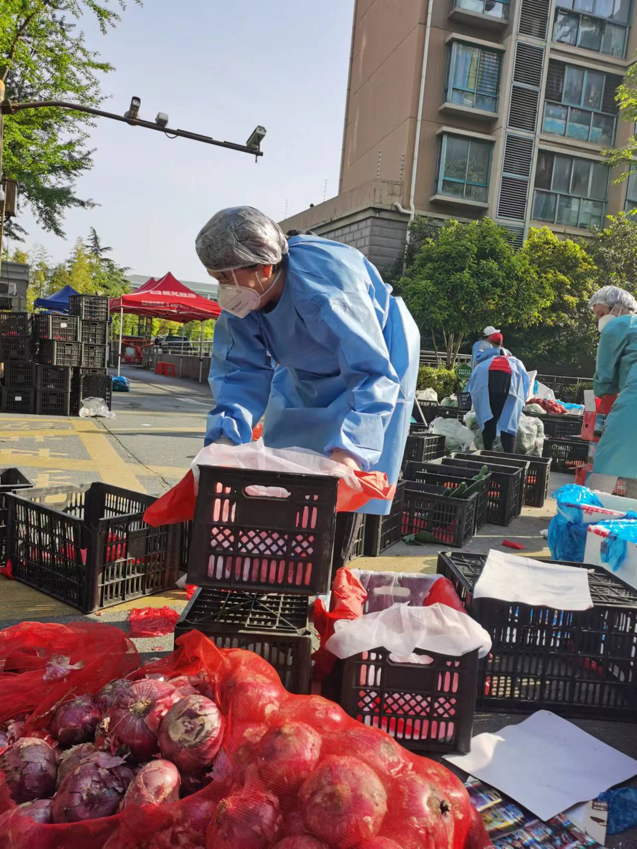 數理統計系教工黨支部書記趙霞教授完成了社區“雙報到”后立即加入了志愿者服務隊。有一次,她在志愿者微信群里搶到的任務是為居民分發共計14噸的街道保供蔬菜和福建永安援助蔬菜。她先是在“運輸組”做數據統計工作,完成后又立即主動加入“分菜組”,從早上忙到下午2點多,馬不停歇,滴水未進。談及這次志愿活動的體會,她笑著說,數據統計需要認真細致,分菜考驗體力和耐力,這些都是我的特長。這段時間,她看到了鄰居們互通信息、守望相助、爭先恐后為社區做奉獻,充分體會到團結的力量,集體的力量。她相信,任何困難都是暫時的,一切“陰霾”終將會過去。