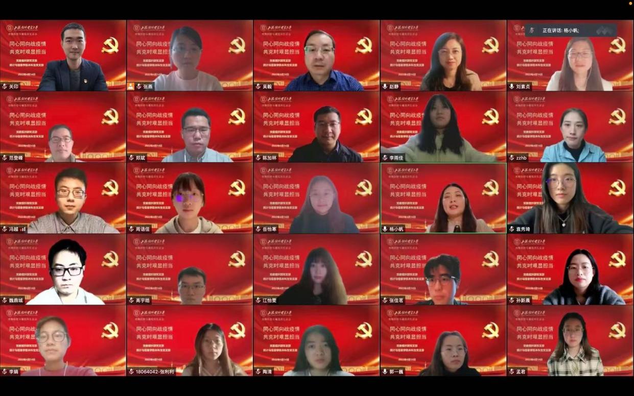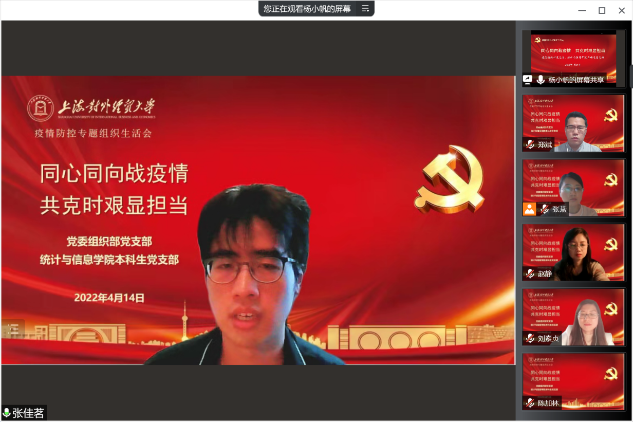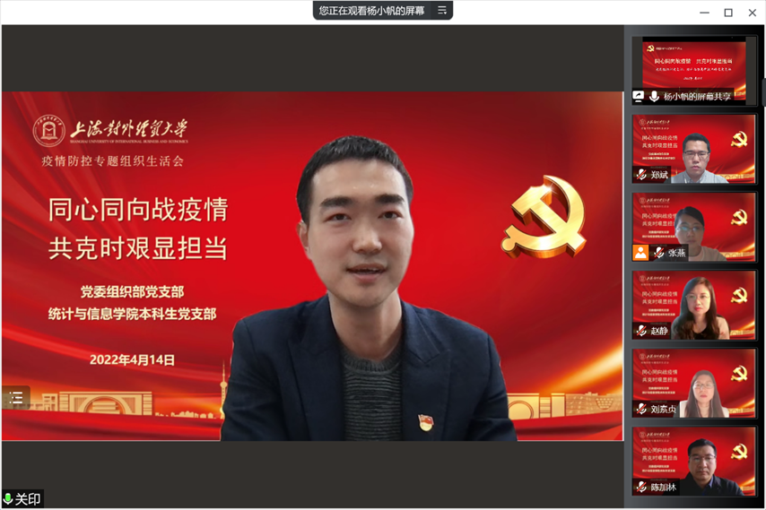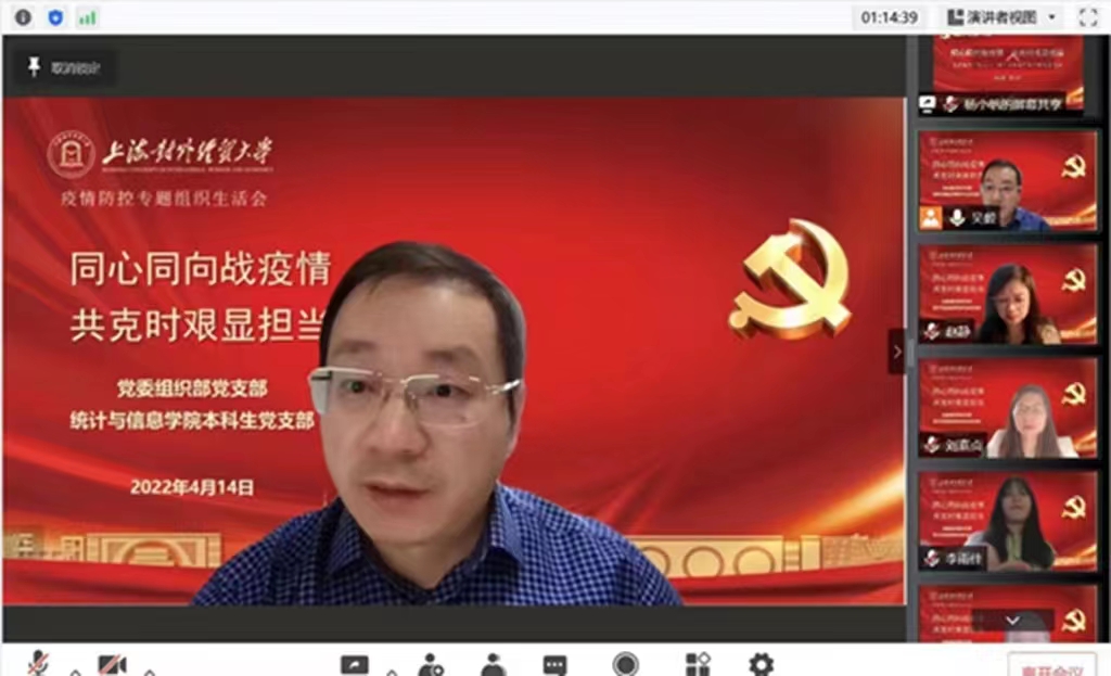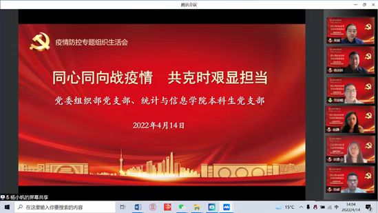 4月14日下午,黨委組織部黨支部和統(tǒng)計(jì)與信息學(xué)院本科生黨支部以“同心同向戰(zhàn)疫情 共克時(shí)艱顯擔(dān)當(dāng)”為主題,聯(lián)組在線召開疫情防控專題組織生活會(huì),校黨委副書記吳毅參加組織生活會(huì)并做專題黨課。會(huì)議由統(tǒng)計(jì)與信息學(xué)院本科生黨支部書記、輔導(dǎo)員楊小帆主持。