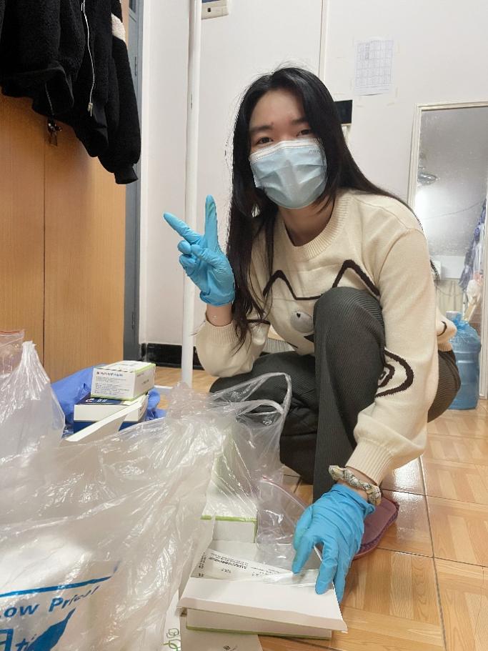 經濟統計學1801班栗亞茹同學作為所在樓宇志愿者,主要參與樓宇值班、物資發放等工作。她說,社區封閉管理以來,我們見證了許許多多老師、醫護人員、食堂工作人員等的辛勤付出,自己作為一名學生黨員,很榮幸能夠為學生社區防疫工作出一份力。