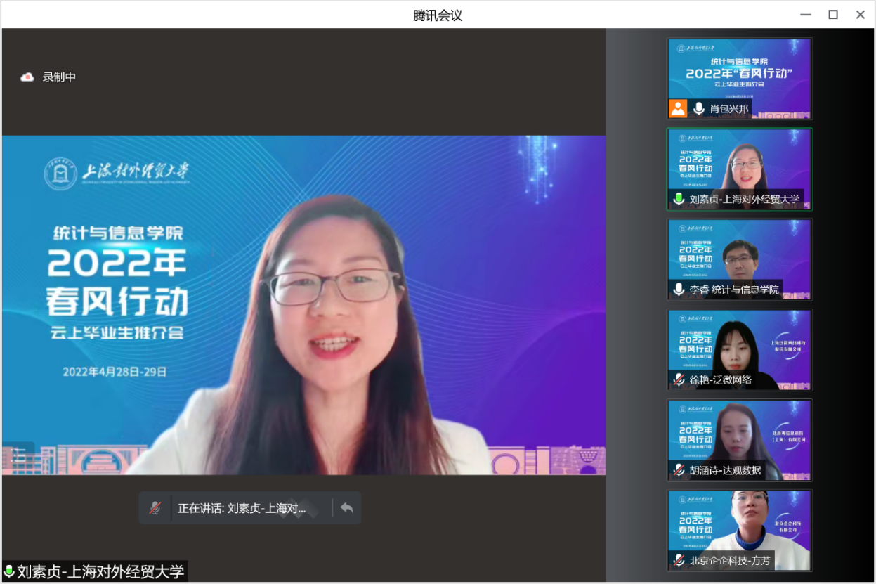 這是上海對外經(jīng)貿(mào)大統(tǒng)計與信息學(xué)院推進實施的“春風(fēng)行動”,為切實促進畢業(yè)生更充分、更高質(zhì)量就業(yè),積極搭建在校畢業(yè)生與用人單位精準(zhǔn)供需對接的平臺,于2022年4月起每周在線舉辦云上畢業(yè)生推介會。首場集中推介會于4月28日和29日兩天滾動舉行,吸引了埃森哲(中國)有限公司、上海投資咨詢集團有限公司、上海泛微網(wǎng)絡(luò)科技有限公司等15家用人單位,提供近60個就業(yè)崗位。25人初步達成了就業(yè)意向,約占招聘崗位的二分之一。