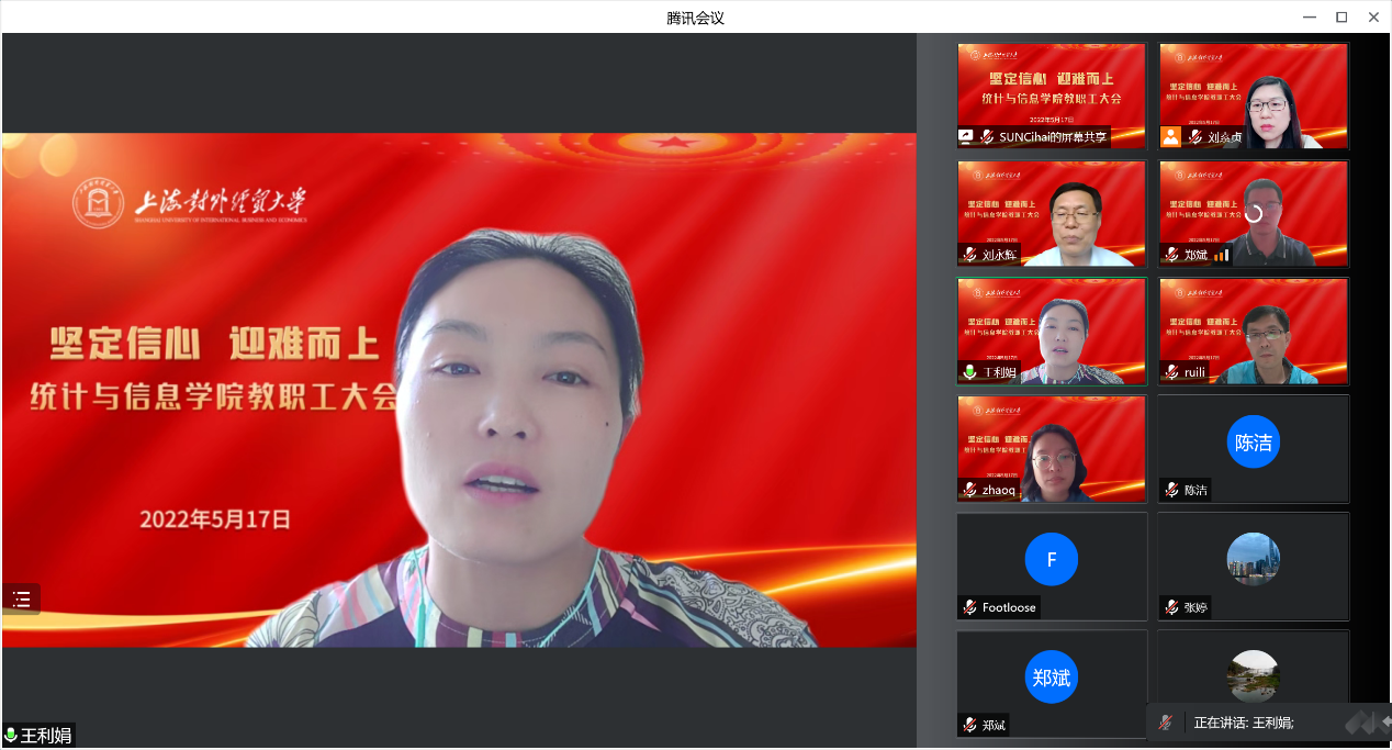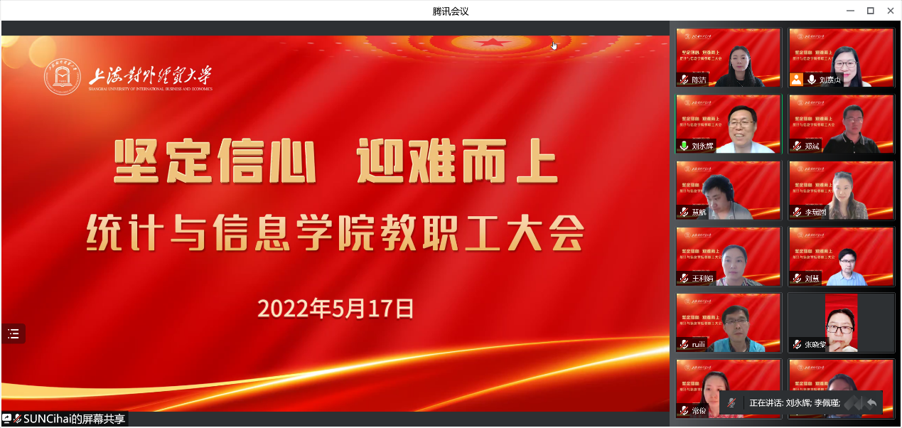 5月17日下午,統(tǒng)計(jì)與信息學(xué)院在線召開全體教職工大會(huì),就近期疫情防控工作和學(xué)院教學(xué)、科研、畢業(yè)生就業(yè)及“訪萬(wàn)企,讀中國(guó)”社會(huì)調(diào)查項(xiàng)目等重點(diǎn)工作進(jìn)行了部署,學(xué)院領(lǐng)導(dǎo)班子、全體教職工參加了會(huì)議。會(huì)議由院長(zhǎng)劉永輝主持。