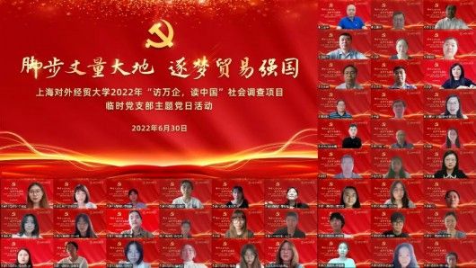 中新網上海新聞7月4日電(許婧)上海對外經貿大學2022年“訪萬企,讀中國”社會調查項目臨時黨支部在線開展主題黨日活動6月30日舉行,以“腳步丈量大地 逐夢貿易強國”為主題邀請校內外專家開設專題黨課,激勵參與調查項目的師生牢記囑托、砥礪奮進,以黨建領航助推“訪萬企,讀中國”社會調查項目取得高質量成果。