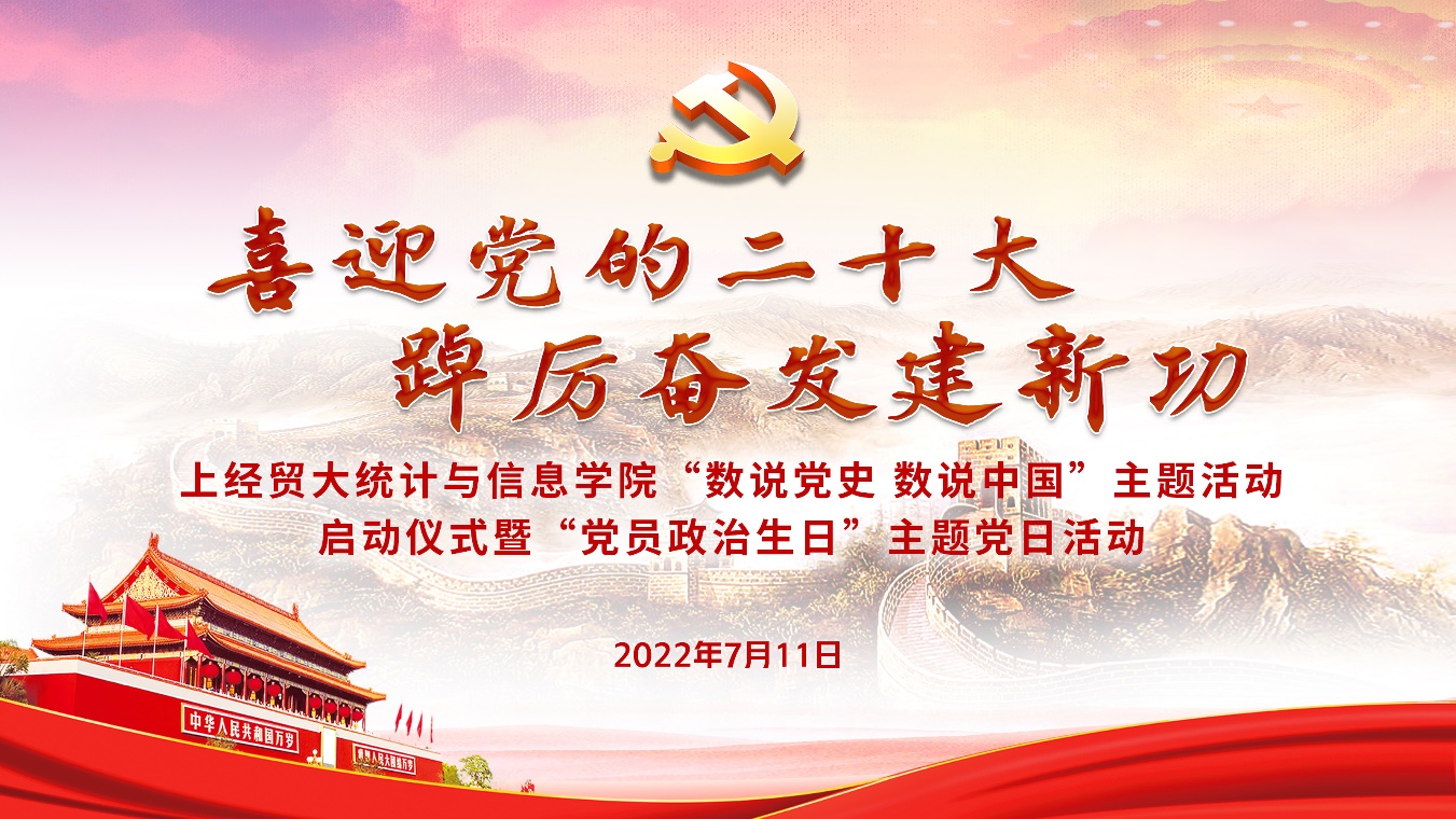 為迎接黨的二十大勝利召開(kāi),深入學(xué)習(xí)貫徹落實(shí)上海市第十二次黨代會(huì)精神,推動(dòng)黨史學(xué)習(xí)教育常態(tài)化長(zhǎng)效化,統(tǒng)計(jì)與信息學(xué)院以“喜迎黨的二十大 踔厲奮發(fā)建新功”為主題,于7月11日下午,在線舉辦“數(shù)說(shuō)黨史 數(shù)說(shuō)中國(guó)”主題活動(dòng)啟動(dòng)儀式暨“黨員政治生日”主題黨日活動(dòng)。校黨委副書記吳毅出席活動(dòng)并致辭,上海市第十二次黨代會(huì)代表、中共四大紀(jì)念館黨支部副書記、宣教部主任丁曉,校黨委組織部副部長(zhǎng)趙靜,校關(guān)工委副秘書長(zhǎng)莫怡,統(tǒng)計(jì)與信息學(xué)院黨委領(lǐng)導(dǎo)班子、全體黨員師生和入黨積極分子近300人共同參加。活動(dòng)由統(tǒng)計(jì)與信息學(xué)院黨委副書記李睿主持。