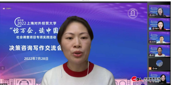 為幫助師生結合企業調研撰寫高質量決策咨詢報告,項目邀請校國際經貿創新與治理研究院(智庫中心)副院長、學校辦公室副主任夏瑋為調研全體師生寫作決策咨詢報告作指導。圍繞寫作要點、框架設計、選題內容、選擇“切入點”等方面進行了講解,進一步明確調研分析報告和決策咨詢的發力重點,幫助調研隊師生提升決策咨詢和建言獻策的能力,為“訪萬企,讀中國”社會調查項目取得實效奠定堅實基礎。