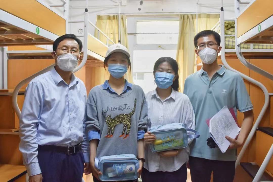 統(tǒng)計(jì)與信息學(xué)院院長(zhǎng)劉永輝,院黨委副書記李睿、院團(tuán)委書記肖包興邦和院2022級(jí)本科新生輔導(dǎo)員助理彭鵬來到新生宿舍,與新生親切交談,詳細(xì)了解學(xué)生入校情況和住宿感受,并送上學(xué)院印有“你好,統(tǒng)信人”的新生用品包,表達(dá)了對(duì)新生的歡迎和祝福。在讓同學(xué)們感受到學(xué)院的溫暖關(guān)懷的同時(shí),新生用品包中清潔用品、防疫口罩、消毒洗手液等為新生的日常防疫保駕護(hù)航。