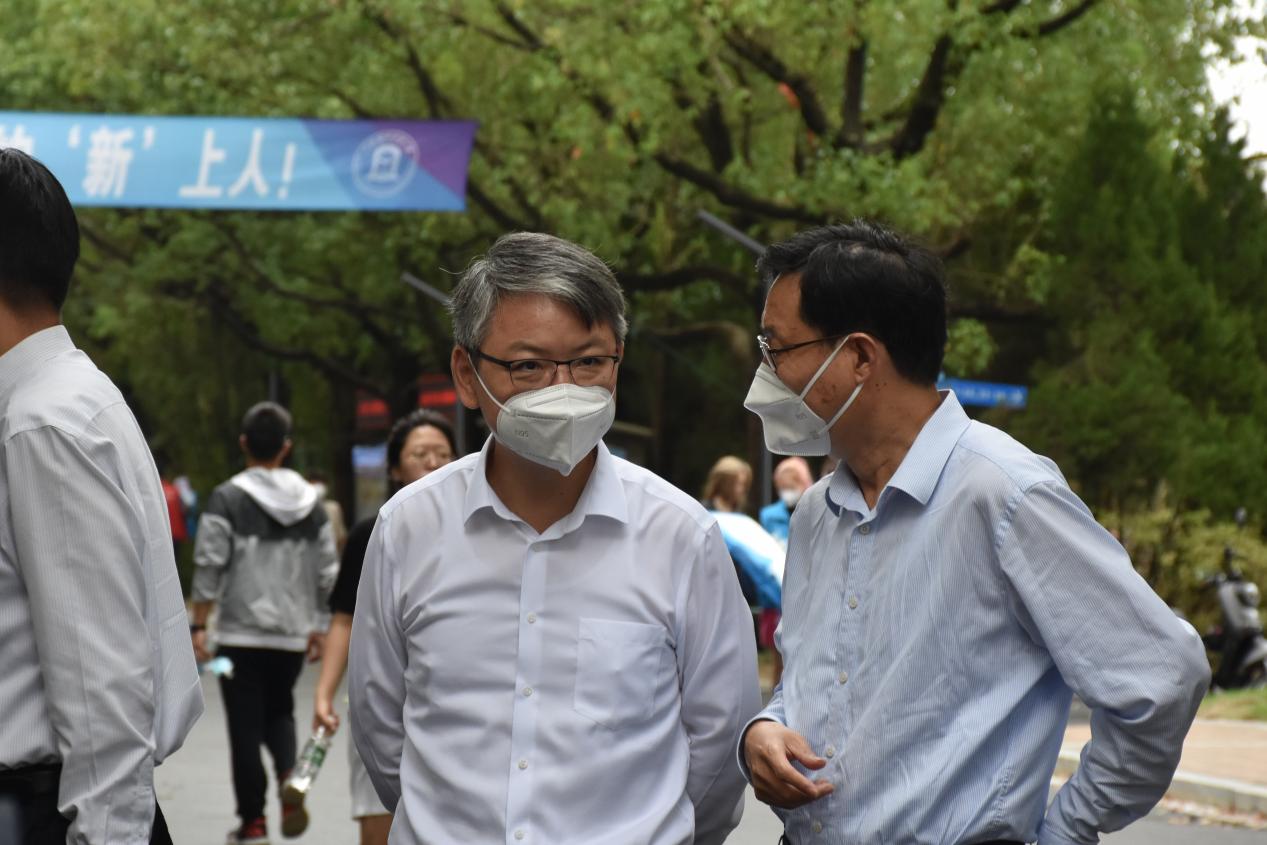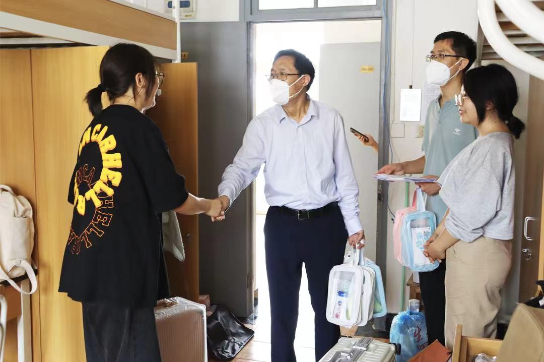 當(dāng)天上午,學(xué)校黨委書記殷耀,黨委副書記、副校長(zhǎng)祁明一行早已在社區(qū)迎接新生的到來。期間,校領(lǐng)導(dǎo)來到統(tǒng)計(jì)與信息學(xué)院的新生樓宇,與學(xué)院領(lǐng)導(dǎo)進(jìn)行了交流,了解新生入學(xué)安排和樓宇報(bào)道情況。