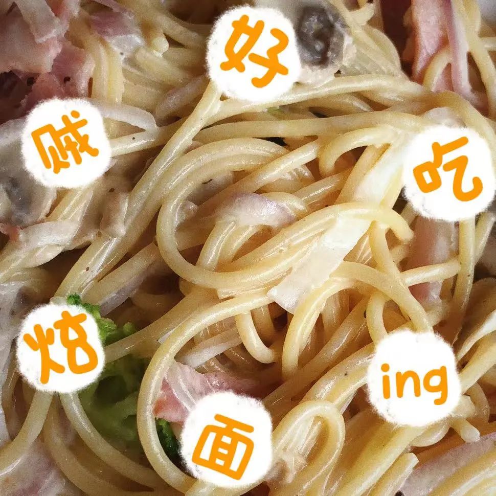 培根奶油意面:面條煮的恰到好處,q彈順滑,奶香四溢,每一根面條上都裹滿醬汁,碳水到站