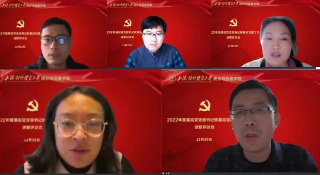 會上,應(yīng)用數(shù)學(xué)系教工黨支部李瑞囡、信息管理系教工黨支部柳青、數(shù)理統(tǒng)計系教工黨支部趙霞、經(jīng)濟統(tǒng)計系教工黨支部張建新、數(shù)據(jù)科學(xué)系教工黨支部閆辛、本科生黨支部楊小帆、研究生第一黨支部周秋華、研究生第二黨支部栗亞茹、研究生第三黨支部王心竹、研究生第四黨支部陳皓、研究生第五黨支部崔昊天和研究生第六黨支部申玉宇等12位黨支部書記,分別從2022年度基層黨建工作開展情況、查擺問題與原因剖析、下一步努力方向等方面進行了述職。