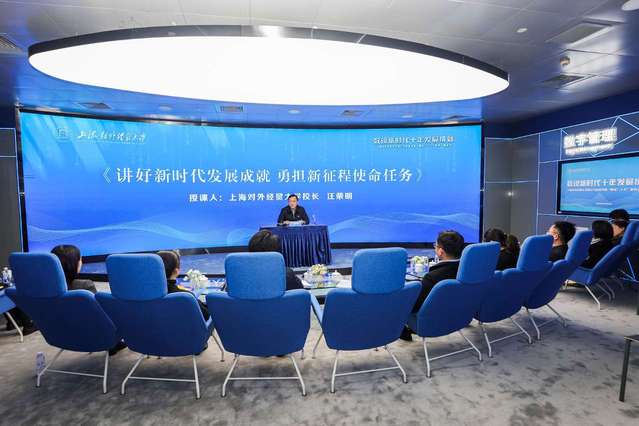 上海對外經貿大學校長汪榮明以“講好新時代發展成就,勇擔新征程使命任務”為題為全體師生講授了一堂思政課。他積極評價了在實驗室里開設“數說新時代十年發展成就”課程的新嘗試,尤其是師生運用數據挖掘和數據分析,用數字說話,讓課程內容更有說服力,讓青年更有“共鳴”、能“共情”,希望這樣的“數說”活動繼續辦下去,把新時代的奮斗故事講好,把奮斗精神傳承好。