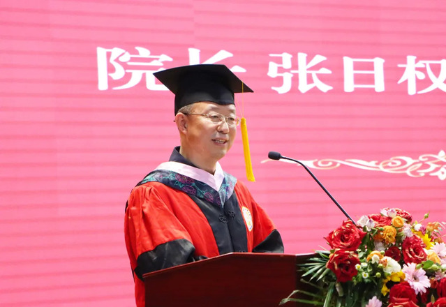 院長張日權向圓滿完成學業、即將開啟新征程的畢業生表示衷心的祝賀,向含辛茹苦培養同學們的父母表示真誠的祝福,向辛勤培育同學們的學院全體導師和教職員工表示誠摯的感謝。