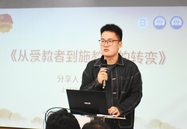 上經貿大附校教師張天笑以《從受教者到施教者的轉變》為題做初心分享,他回顧了自己成為人民教師這一年多以來的工作感受,深感責任重大,他將矢志教育事業,守好教書育人的“責任田”。上經貿大附校花園分校教師徐亞茹以《心中有夢,眼里有光》為題做初心分享,她講述了自己堅定選擇教師這份職業的心路歷程,鼓勵在場師生勇于追夢,堅定圓夢。