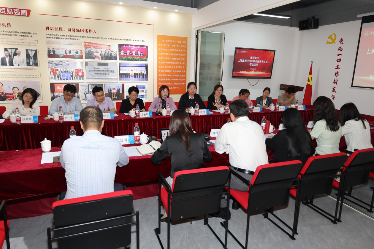 5月25日,上海應用技術大學外國語學院黨總支書記楊雪、院長潘智丹帶隊一行來我校開展主題教育調研,與國際商務外語學院、統計與信息學院圍繞黨的建設、學科建設、課程建設、人才培養等內容進行座談研討。國際商務外語學院黨委書記劉根春,統計與信息學院黨委書記劉素貞,國際商務外語學院副院長王玉、單建國、商務英語教工黨支部書記胡筱穎等出席調研交流會。交流會由劉素貞主持。