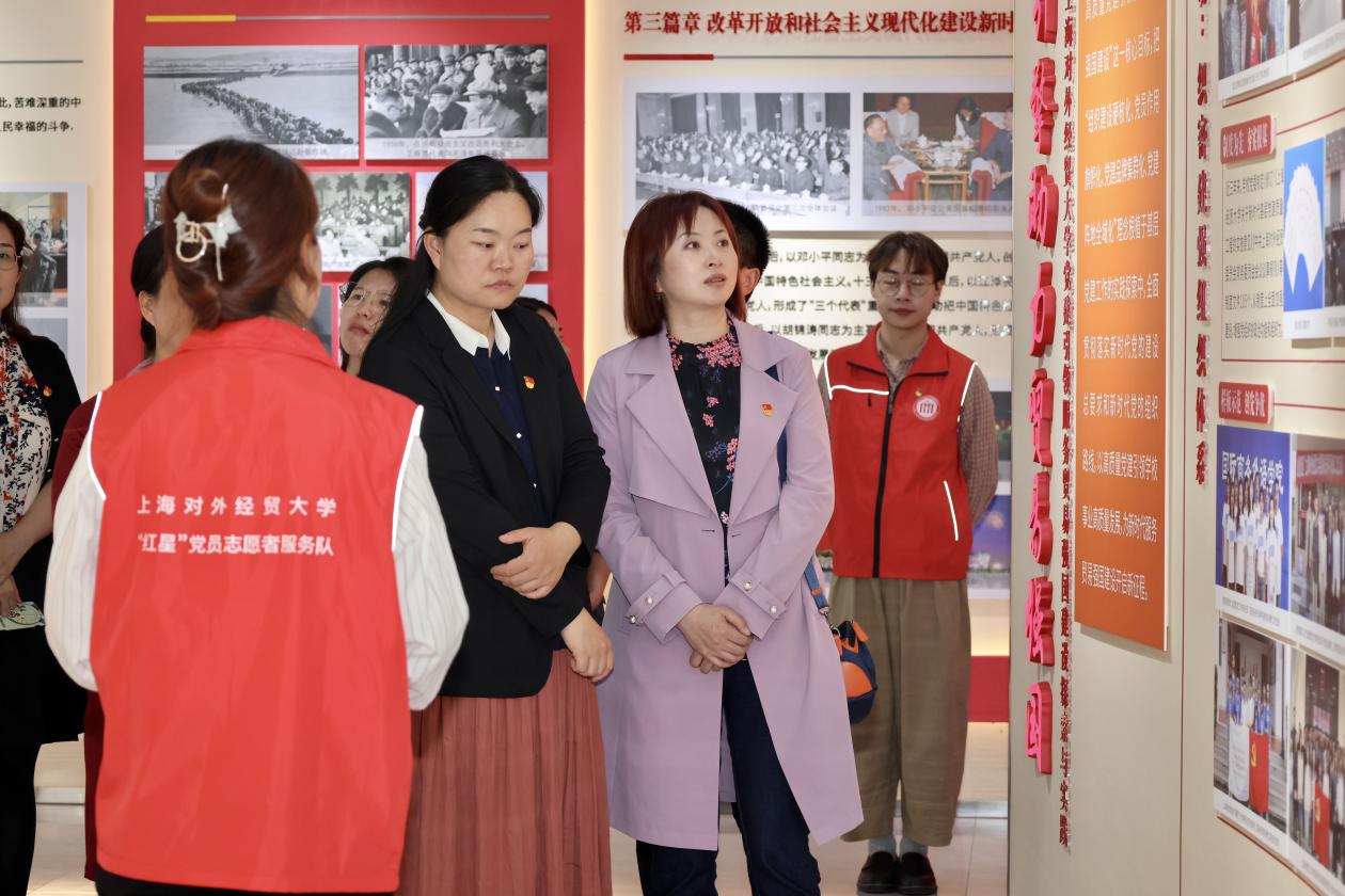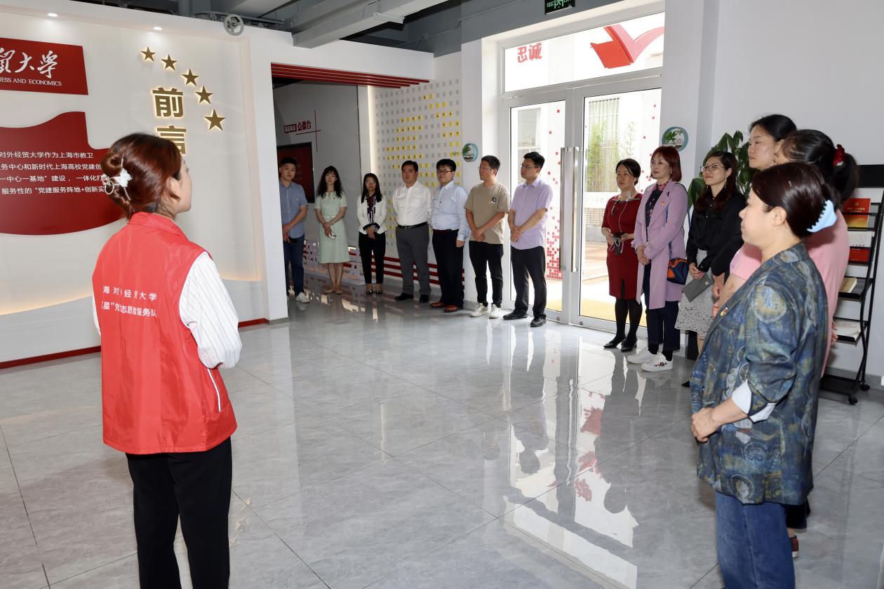 會前,上海應用技術大學一行在志愿者的帶領下參觀了學校黨建服務中心。