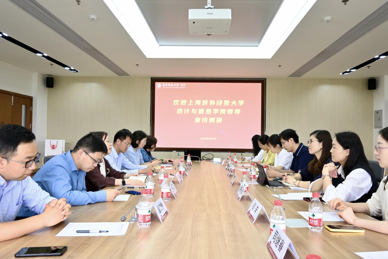5月26日,上海對外經(jīng)貿(mào)大學(xué)統(tǒng)計與信息學(xué)院黨委書記劉素貞,副院長王利娟、李睿,信息管理系主任龔丹丹、數(shù)據(jù)科學(xué)系主任閆辛等一行赴華東師范大學(xué)統(tǒng)計學(xué)院調(diào)研,就進(jìn)一步加強(qiáng)黨的建設(shè)、學(xué)科專業(yè)建設(shè)、師資隊伍建設(shè)、人才培養(yǎng)等內(nèi)容進(jìn)行學(xué)習(xí)交流。華東師范大學(xué)統(tǒng)計學(xué)院黨總支書記李夢雋,副院長於州 ,院長助理劉玉坤,專業(yè)主任唐炎林、仇春涓,教務(wù)秘書王璐瑤等參加調(diào)研交流會。會議由李夢雋主持。