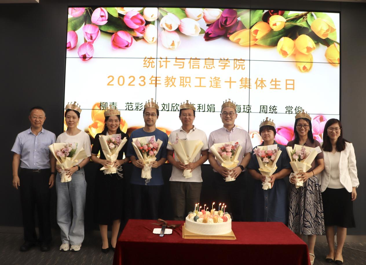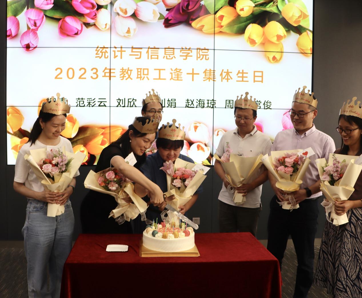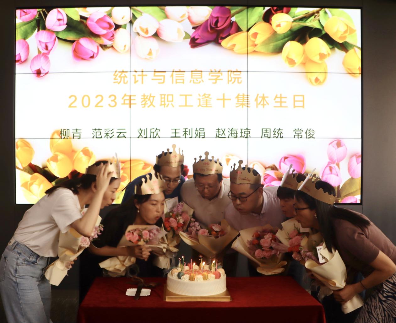 會上還特別策劃舉行了2023年教職工逢十集體生日會。學院工會副主席趙輝宣讀了本年度逢十生日教職工名單:柳青、范彩云、劉欣、王利娟、趙海瓊、周統、常俊。劉素貞和張日權代表學院工會為7位老師送上了鮮花和祝福。大家一起唱響生日快樂歌,老師們吹蠟燭,切蛋糕,其樂融融,充分感受到了統信大家庭的溫暖,共同分享甜蜜與幸福。