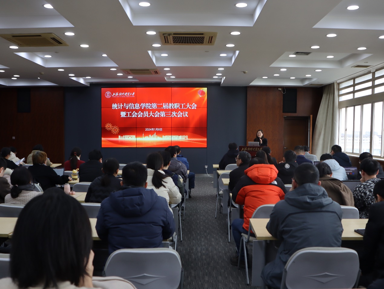 1月8日,上海對外經貿大學統計與信息學院第三屆教職工大會暨工會會員大會第三次會議在信息樓503會議室舉行,學院領導班子、工會委員會委員以及全體教職工出席了會議。大會由學院黨委書記劉素貞主持。