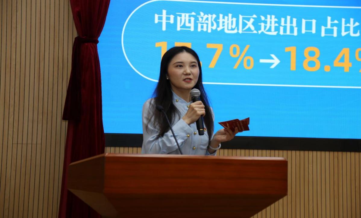統(tǒng)計(jì)與信息學(xué)院“數(shù)說黨史 數(shù)說中國”理論宣講團(tuán)為師生黨員開設(shè)了兩堂微黨課。應(yīng)用數(shù)學(xué)系教工黨支部書記李瑞囡和應(yīng)用統(tǒng)計(jì)專業(yè)本科生黨員劉錚宇同學(xué)共同講授“數(shù)說貿(mào)易強(qiáng)國”微黨課,通過大量的數(shù)據(jù)展示新時(shí)代以來國家對(duì)外貿(mào)易發(fā)展的進(jìn)程,在規(guī)模躍升、結(jié)構(gòu)優(yōu)化、高質(zhì)量發(fā)展方面取得的成績(jī),并以詳實(shí)的數(shù)據(jù)分析解讀5年來學(xué)校師生在“訪萬企 讀中國”社會(huì)調(diào)查項(xiàng)目中扎根企業(yè)一線接力調(diào)研,為服務(wù)貿(mào)易強(qiáng)國建設(shè)做出的貢獻(xiàn)。