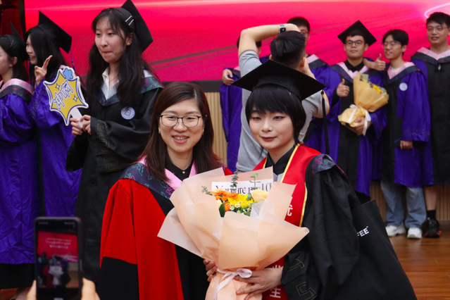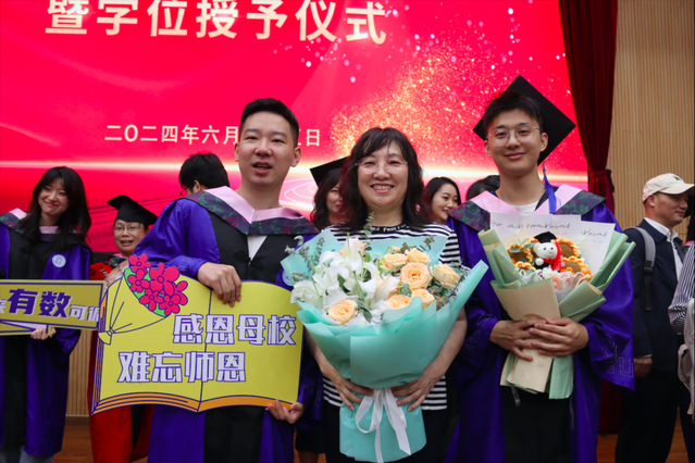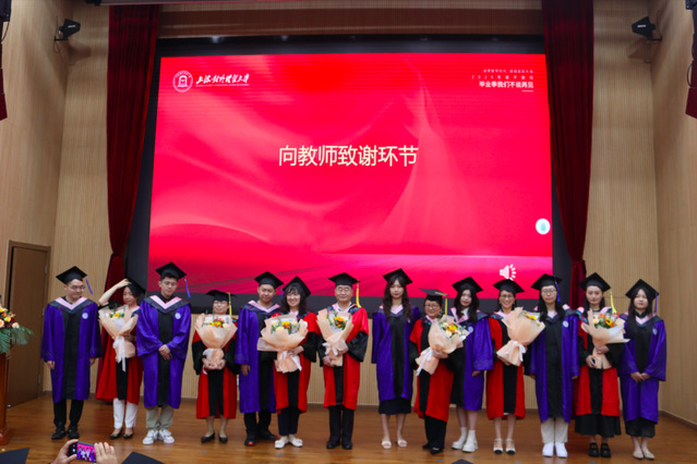 畢業(yè)生代表向學院教師代表獻花,表達對老師們辛勤培育的感激之情。