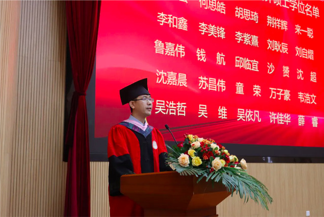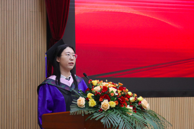 研究生畢業(yè)生代表王心竹表示,學院不斷壯大的發(fā)展軌跡是大家前行的最好引領。通過這段求學時光,同學們塑造了嚴謹求實的科學素養(yǎng)和勇于探索的精神品質。祝愿學院越來越好!