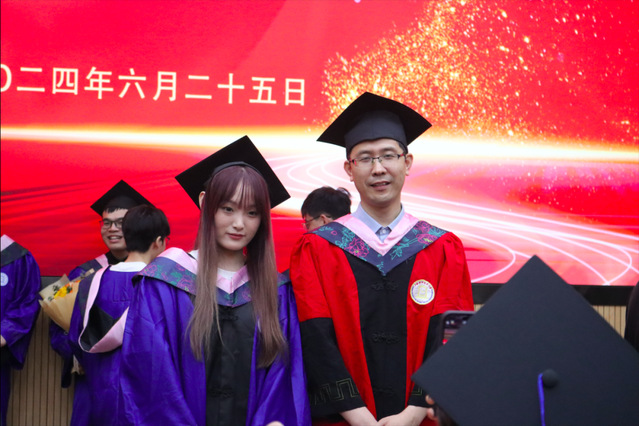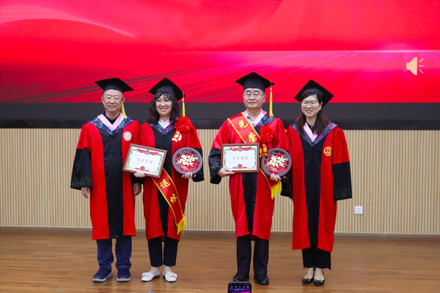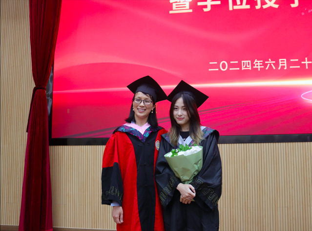 學院領導和導師代表們?yōu)槊恳晃划厴I(yè)生撥穗并頒發(fā)畢業(yè)證書和學位證書。