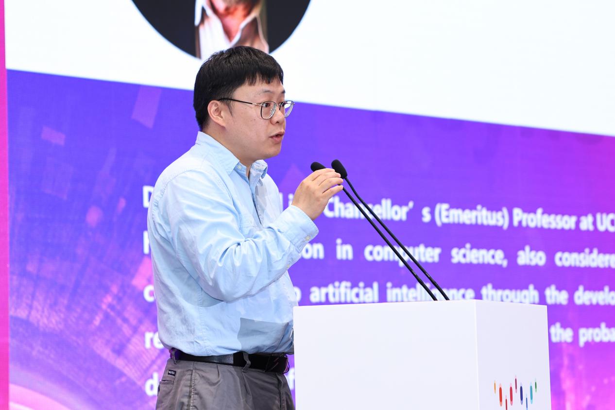 在致辭環節,汪榮明代表協辦方向出席大會的全體嘉賓表示歡迎,向所有演講嘉賓表示感謝。他介紹了上海對外經貿大學的發展歷史、辦學定位,以及在服務國家和地區戰略中做出的重要貢獻,表示期待通過本次會議的深入研討,共同打造一個充滿啟發和發現的旅程,利用因果推斷的力量,在人工智能領域開拓出新的前沿。