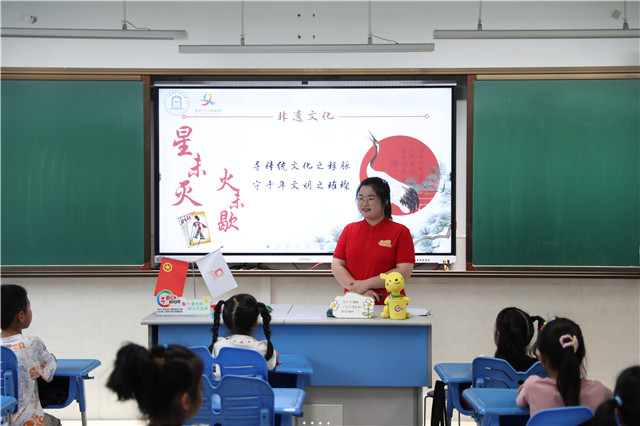 而在“數說松江非遺”課程上,宣講團的凡美琪同學通過一組組富含深意的數字、精彩的圖片和視頻,展示了松江非物質文化遺產的獨特魅力。從傳統的手工藝到民俗活動,從古老的顧繡到皮影戲,每一個非遺項目都讓小朋友們感受到了傳統文化的深厚底蘊和時代活力。