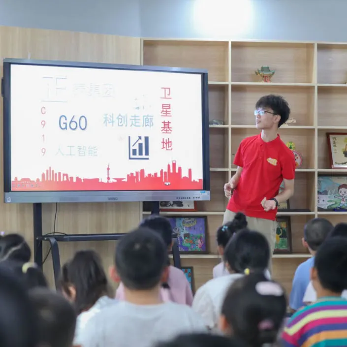 在五厙學校,“數(shù)說G60科創(chuàng)走廊”的課堂在講師陳朱力的引導下拉開帷幕。講師陳朱力以提問的方式,引入了酒泉衛(wèi)星發(fā)射中心、中國C919國產大飛機等新時代科技產品,帶領同學們了解了科技發(fā)展對生活以及國家運作的重要性。 他詳細描述了G60科創(chuàng)走廊從1.0版到3.0版的發(fā)展歷史,講述了這一走廊如何從上海松江工業(yè)區(qū)發(fā)展成為涵蓋九城市的長三角G60科創(chuàng)走廊。