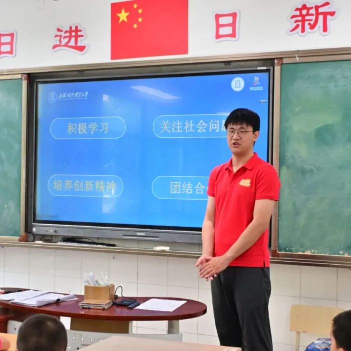 在“數(shù)說貿易強國”的課堂上。宣講團成員舒不了通過深入淺出的講解和生動的互動,讓孩子們更直觀地了解中國在國際貿易領域的發(fā)展歷程與成就。