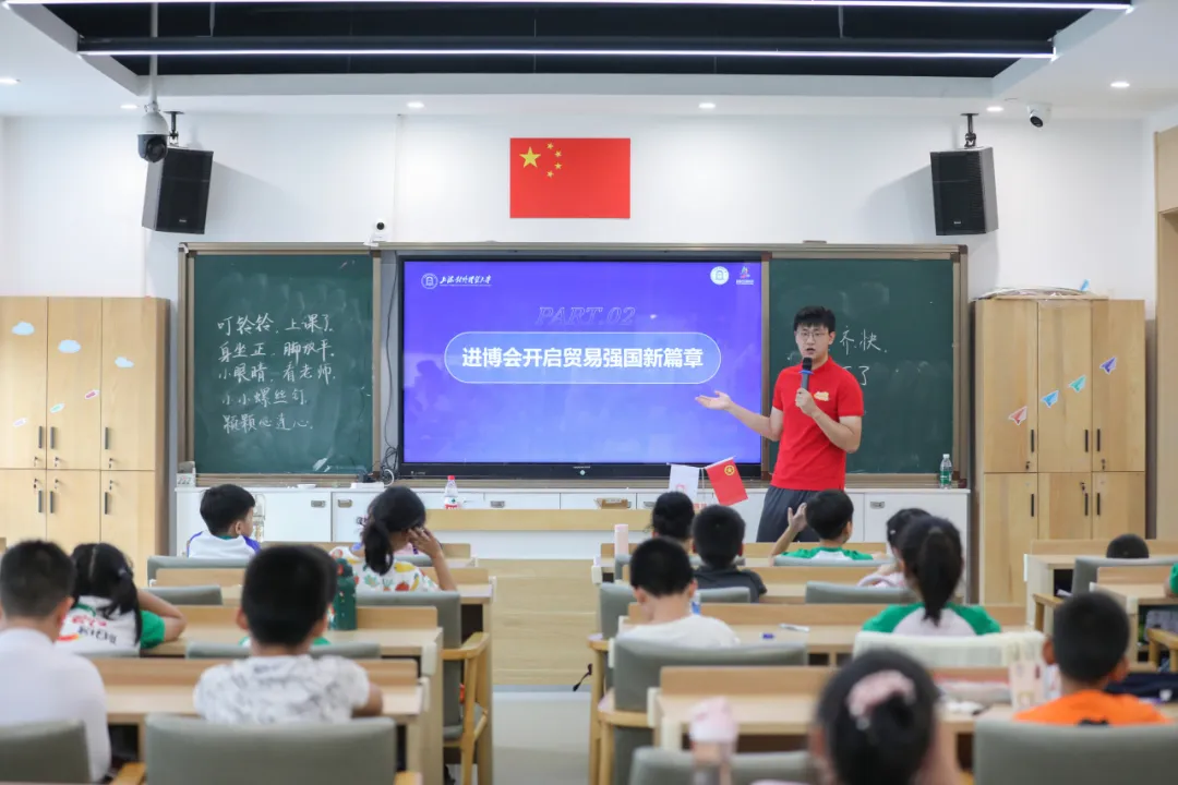 舒不了結合具體實例,生動講解了“貨物貿易”“服務貿易”“數字貿易”等概念,并詳細介紹了我國在全球貿易中的地位和成就。通過播放視頻和展示數據,他進一步講述了中國加入世界貿易組織(WTO)的艱難歷程,強調了這一歷史性事件對中國經濟騰飛的深遠影響。