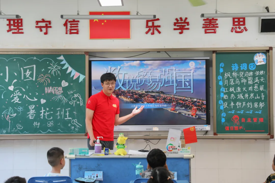 在石湖蕩鎮李塔匯學校和中山街道黨群服務中心,宣講團講師舒不了擔任了“數說貿易強國”微課的主講人。他通過習近平總書記在中國共產黨第二十次全國代表大會上的講話,引導小朋友們理解中國成為貿易強國的重要意義。