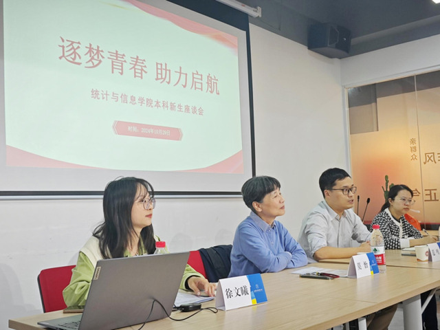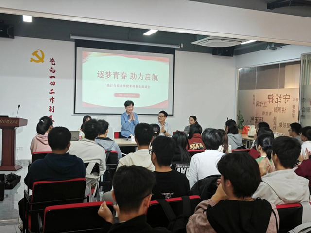 為及時(shí)了解和把握本科新生的思想動(dòng)態(tài)和學(xué)習(xí)狀態(tài),助力新生順利適應(yīng)身份轉(zhuǎn)換,更好地融入大學(xué)生活,10月29日下午,學(xué)院在學(xué)校黨建服務(wù)中心召開(kāi)“逐夢(mèng)青春,助力啟航——統(tǒng)計(jì)與信息學(xué)院本科新生座談會(huì)”。校關(guān)工委副秘書(shū)長(zhǎng)、統(tǒng)計(jì)與信息學(xué)院關(guān)工委分會(huì)副會(huì)長(zhǎng)莫怡,統(tǒng)計(jì)與信息學(xué)院黨委副書(shū)記范鳴、黨委專(zhuān)職組織員雷錚、本科新生輔導(dǎo)員徐文曦,以及2024級(jí)30余名本科新生代表參加了此次活動(dòng)。活動(dòng)由范鳴主持。
